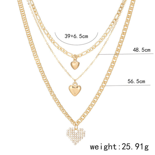 Fashion Heart Pendant Layered Necklace Sweater Chain